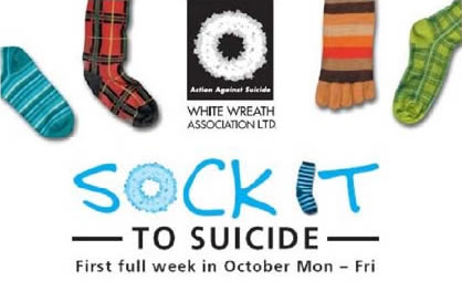 My reason in writing is to tell you about White Wreath’s ‘Sock it to Suicide’ campaign which is run in the 3rd full week of October and encourages people to wear bright coloured socks to work and school etc, and donate a gold coin to White Wreath to help raise funds to build the Safehaven Centres. It is a light hearted way of raising awareness for a very serious problem in our society.